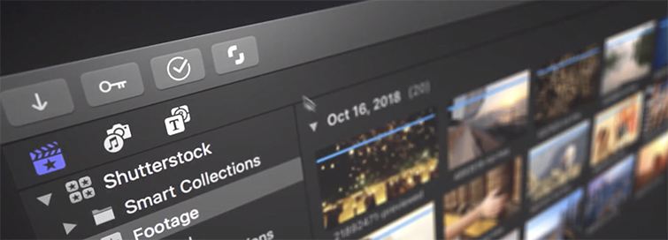 Shutterstock actually has a free Final Cut Pro X plugin that allows you to search stock clips and throw in the files before you ever license a clip. So if you’re editing a video for a client, you can have the watermarked clip in the timeline so they can approve it before you license it. Once you do license the clip, the clip stays in your timeline so you never have to leave FCPX. FCPX is good about making these plugins accessible and easy for editors to stay in the software, allowing them to work fast so they can move on to the next project.