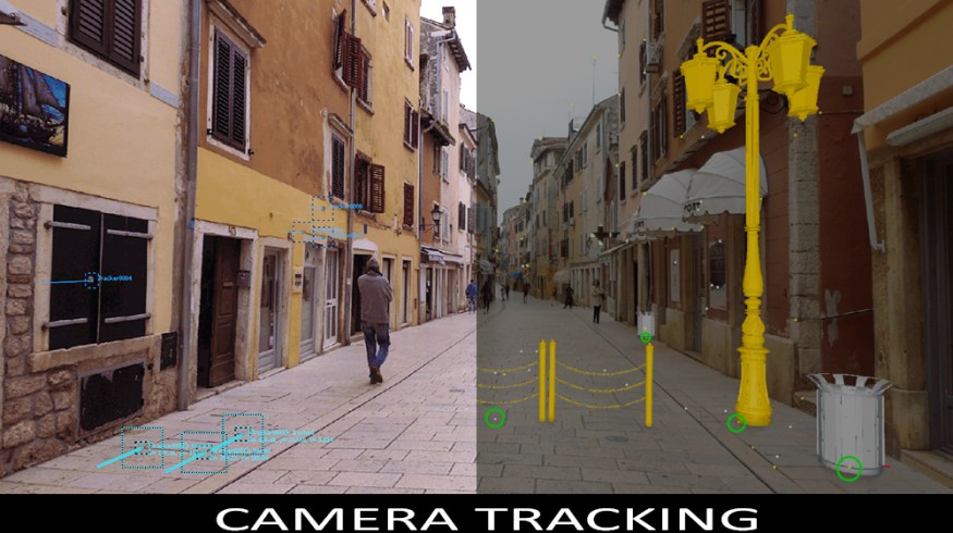 Simply put, the goal is to record the real camera movement and transfer it to a virtual camera—hence the term camera tracking.