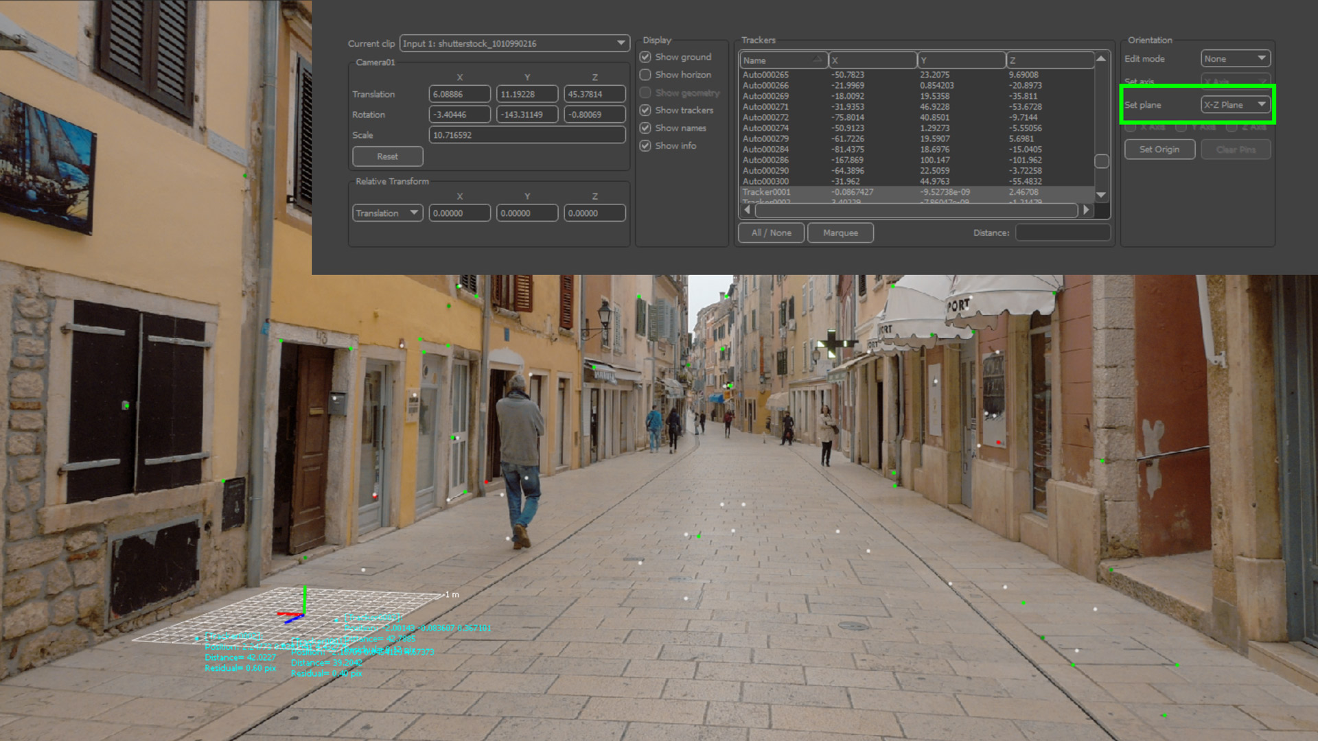 To make the orientation work, we select all the three trackers on the left and set an X-Z plane. This action orients the grid so that it is aligned with the pavement.