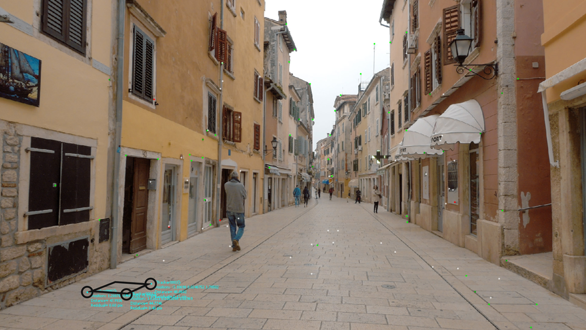 In the following process, PFTrack picks up some features—the yellow dots—and tries to keep them stable during the video playback.