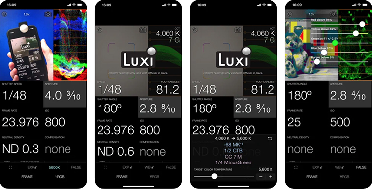 You’ll need a Luxi or Lumu Lite attachment, but with the Cine Meter II’s lux and foot candle readouts, you’ll get all the color and metering controls you’ll need to read color temps, green/magenta tints, and other correction details for calculating shutter speed, shutter angle, aperture, ND, and ISO directly.