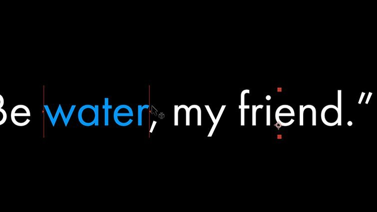 For the first step, I’ll break my text into the specific parts that I want to animate. This includes the quotation marks, the word water, the quote, and the name. I’ll also create a group called Animate IN. Again, the beauty of this method is that I can do all of my animations within one single text layer.