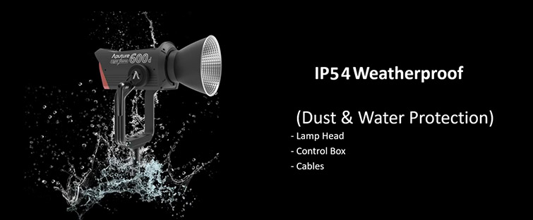 The 600d is IP54 weatherproof. This means that you can leave this light out in the rain without a care in the world, then take it to the desert and drop it into the sand a hundred times and your investment will be no worse for the wear. All connections are weather sealed and all components are made with protection from the elements in mind.