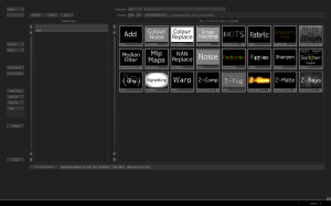 The Matchbox Node does come with a few interesting presets that can be useful. When you enter the Matchbox Node you are taken to the Matchbox effects located in /usr/discreet/<Smoke Version>/matchbox. The presets include Add, Color Noise, Color Replace, Cross Hatching, Dots, Fabric, Gradient Map, Matte to ZDepth, Median Filter, MipsMaps, Nan Replace, Noise, Posterize, Ripples, Sharpen, Switcher, Twirl, Vignetting, Warp, ZComp, ZFog, ZGlow, ZMatte, ZRays. You must choose an effect first. Then you will be sent to the Matchbox UI.