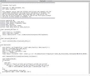 With Smoke 2013’s ConnectFX Nodes there is almost nothing you can’t do. So you may be wondering if there is a way to script your own effects. Well, Smoke has a node to help with that too. The Matchbox Node is a scriptable node built around the OpenGL Shader Language (GLSL) to allow you to create your own shader effects. I am not a coder or programmer, so for me scripting my own effect isn’t really in my wheelhouse. But for those comfortable crafting code, the Smoke Matchbox Node can be quite powerful.
