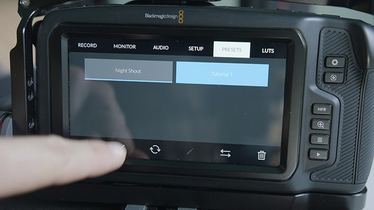 To make things easier on myself, I’ll harness the power of Blackmagic’s in-camera presets. Once set up, I’ll be able to change the settings with the simple tap of a button. Let’s take a step-by-step look at how to use presets.