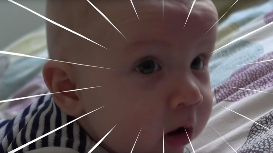 Next, to position the elements, I’ll turn on the baby reaction video layer. I can move the speed lines circle directly over the baby’s face using the main position attribute of the shape layer. To spread out the circle, I’ll open up the transformation options of the individual shape element and drag the Y position up. This will be the same attribute I animate to bring the lines in and out of frame. To adjust the width and length of the lines, I can change the X and Y scaling of the shape element. To adjust the width and length of the circle as a whole, I can change the X and Y scaling of the shape layer. Now I’m ready to bring the lines to life.