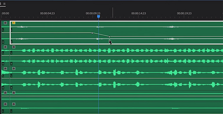 Say you have a track that includes vocals, but right before the chorus swells into your killer montage, you need to add in a bit of voiceover. The vocals in the track are distracting, and reducing or removing them right before the montage would really help sell the VO. So all you have to do is load all the stems of your song in your timeline. If all the tracks are overwhelming your timeline, you can nest them to file into a single clip.