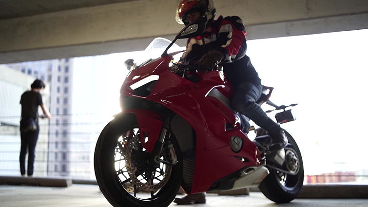 Next was finding a good subject. It needed to complement the sense of speed that this mount creates, as low to the ground as it is. A friend of mine races and builds beautiful motorcycles, so he was the perfect candidate — never ask anyone without professional experience or training to do any stunt work.