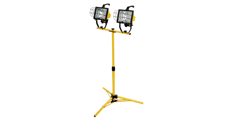 The most common solution for cheap lighting is construction work lights. You’ve probably seen these before. They’re usually dual lights mounted on a bright orange stand.
