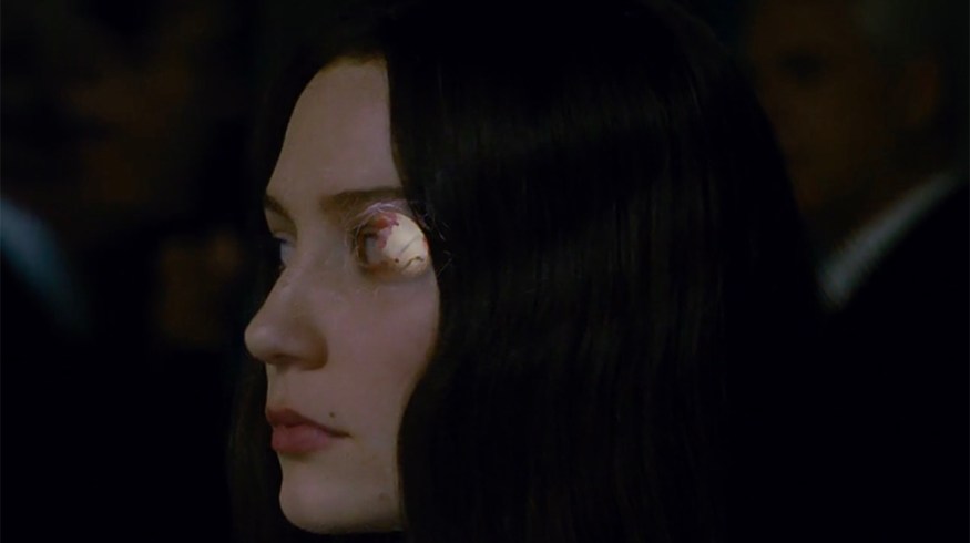 In this example from Francis Ford Coppola‘s Bram Stoker’s Dracula, the match cut pairs with a slow dissolve, so the wolf’s glowing eyes appear first in the vampire bite marks before we fully transition into a scene of a wolf staring into the camera.