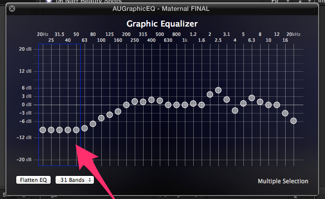 By clicking on a specific frequency, drag your mouse to group any number of bands together in unison.