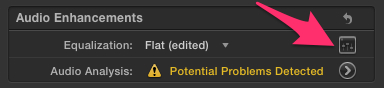 Final Cut Pro X features expansive, versatile graphic equalizers and filters that previous versions did not. These are great for a quick fix to enhance your audio or for simply removing noise/hum. There are a number of included presets for the EQ, all fully customizable. In the Inspector window, click on the Audio Analysis arrow.