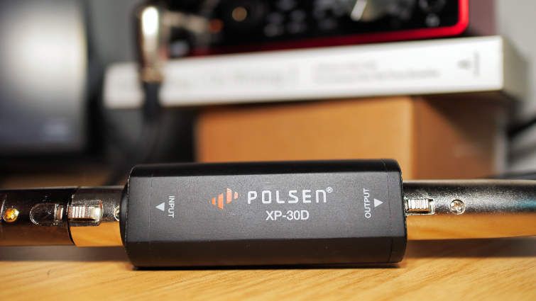 The CL-1 costs $150, though, so I went with the $50 Polsen in-line preamp, which amplifies microphones by +30dB. After installing it, I could hear the PodMic when I adjusted the 2i2’s gain knob to about half. While it’s not hard to install—it requires phantom power, which the 2i2 can provide—the extra expense is not ideal if you’re on a tight budget. I should have done my homework, but, again, at least now you know if you’re buying a low-sensitivity microphone, just factor in the cost of an in-line preamp.