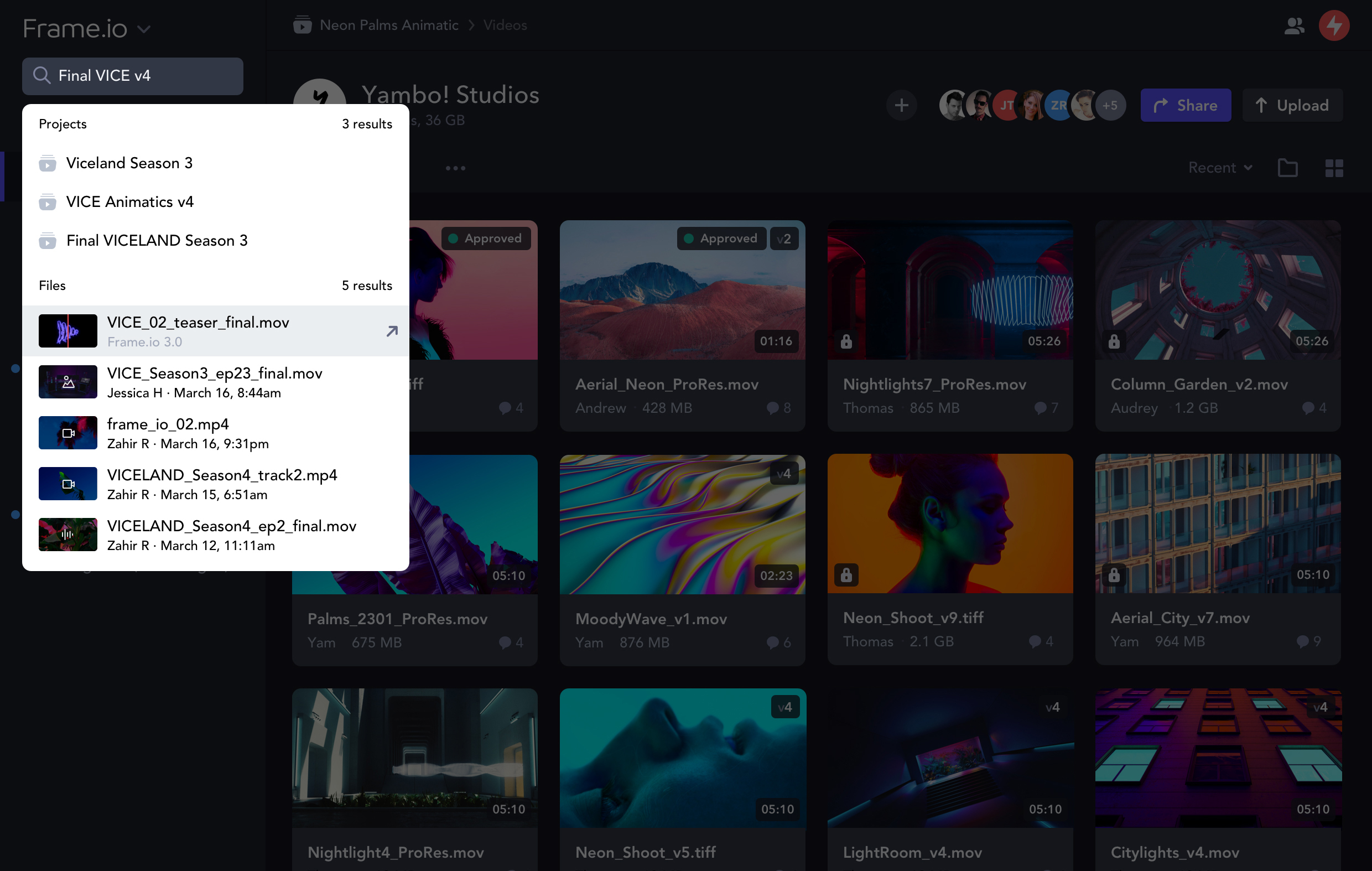 “A new advanced media browser lets you fly through thousands of assets at lightning speed. Updated sorting options make it easier than ever to find exactly what you’re looking for. We also took search to a whole new level. In addition to searching for individual projects, you can now search filenames, approval status, and uploader across hundreds of projects, instantly.”