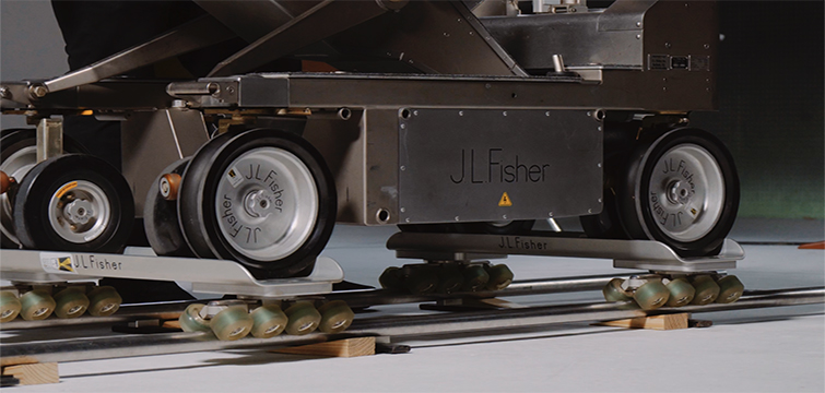When you’ve outfitted the dolly with the track wheels, you can still use the brake system, but you may want to use the Fisher skate wheels, which allow extremely precise movements. When the Fisher is on the skate wheels, you won’t be able to use the brake, so make sure the track is completely level to prevent unwanted drifting. (You can use some grip clips on the tracks to prevent the dolly from moving too far.)