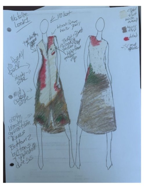 GM: Always the script. Costumes, for me, are always character-/plot-driven. Director notes, casting choices, and other things always come into play during the process, but there’s nothing like reading a script for the first time and having the characters spring to life in my mind while I’m finding out their path for the first time.