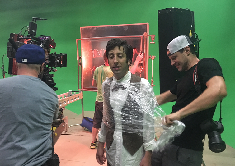“Simon Helberg was game to be tossed around in many ways, including this awesome upside-down stunt. Luckily we only had to do a few takes.”