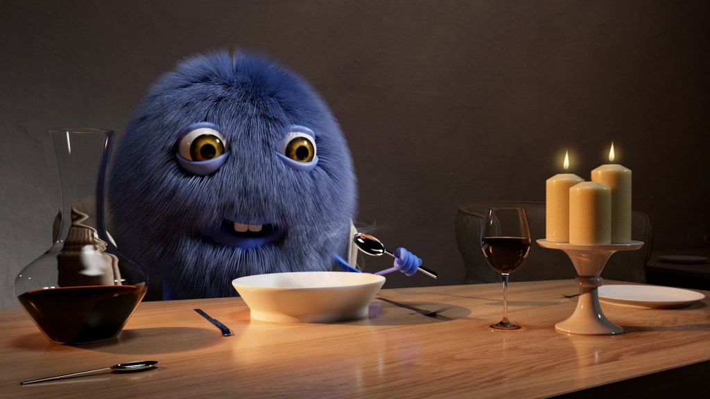 - Bounce Light: This is not actually due to any light source, but it’s the result of light bouncing off of the table and diffusing in all directions. If you observe well, you’ll see the contribution of the bounce light tinting the white dish underneath. This effect is called color bleeding.