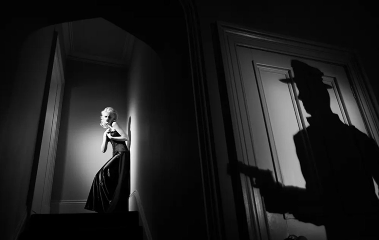 Film noir is an excellent example of hard lighting. The character silhouette is being revealed, and the presence of very dark areas is typically the key element for this kind of lighting.