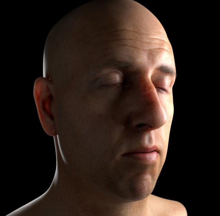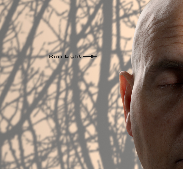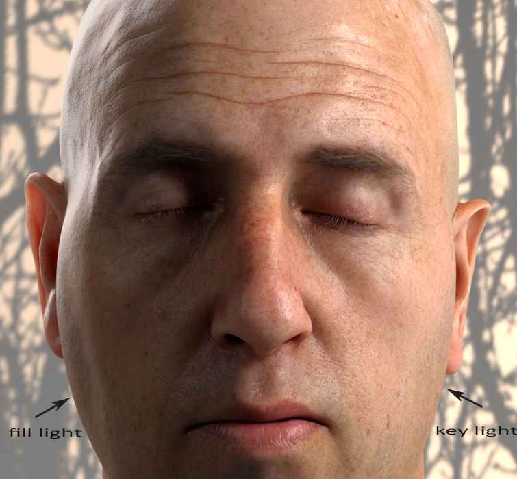 It’s easy to notice the 3 lights in action. Specifically, the Rim Light behind the ear creates a translucency effect, revealing the presence of veins and capillaries.