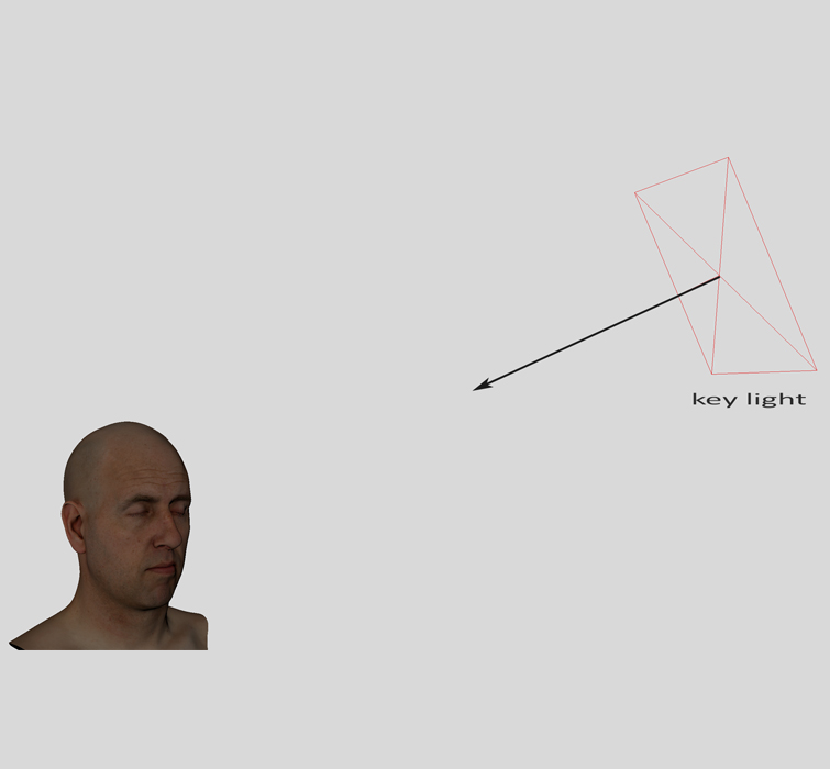 The Key Light can be applied by using an area light because of its diffused nature, but if you want to experiment with a spotlight and play with shadows, you are free to do that. Playing around inside your 3D software is the best way to learn, so try a few different methods.