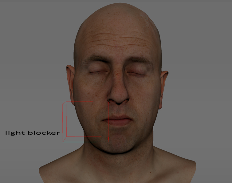 Additionally, In 3D, a light blocker may help you refine the shape of the triangle—you block some of the light that may be present under the cheek. A light blocker simply removes light falling inside it, much like a screen in filmmaking.