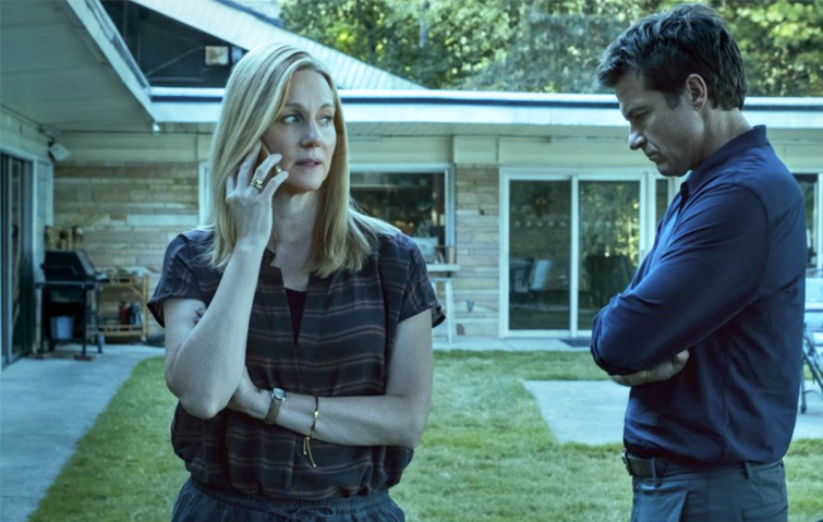 In the Film Noir example (where the key light is definitely more influential than the fill light,) there is more contrast, and the character pops up more in the scene. On the other side, when the light intensities are almost the same, what we perceive is more natural and, in some contexts, more relaxing (even though no scene in Ozark is ever relaxing).