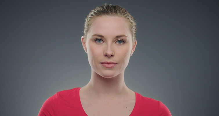 The thing about Quasars is the fantastic wrap you get. This is true of all batten-style or tube-style lights, but the Quasars are just so soft. Here, two bulbs are pointed directly at the talent at a 90-degree angle with a little bit of negative fill on the other side.