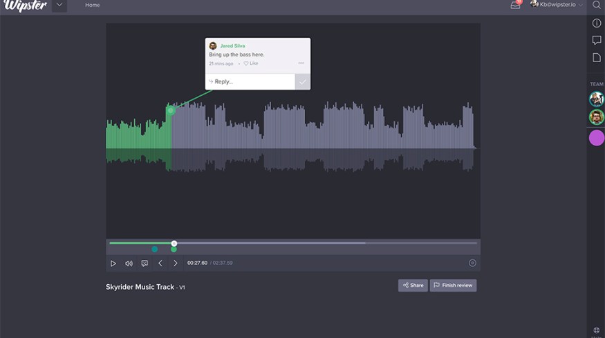 Wipster’s new audio review is the first to enable collaboration directly on the waveform, creating an experience that is intuitive, efficient, and enjoyable for teams and reviewers alike. Audio editors simply drag and drop audio into Wipster, and the platform encodes and generates a playable waveform from which reviewers can listen, comment on, and download if needed. The waveform is what makes Wipster’s audio review unique and understandable to collaborators.