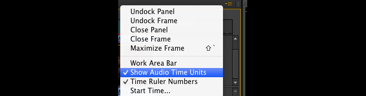 This lets you work with audio in smaller increments – particularly helpful when removing a pop or other audio issue. In the Timeline Menu pull down select “Show Audio Time Units”.