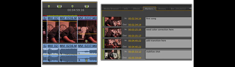 Selecting the Marker in the Marker Panel will take you to the marker in the clip or sequence – a big Premiere Pro timesaver!