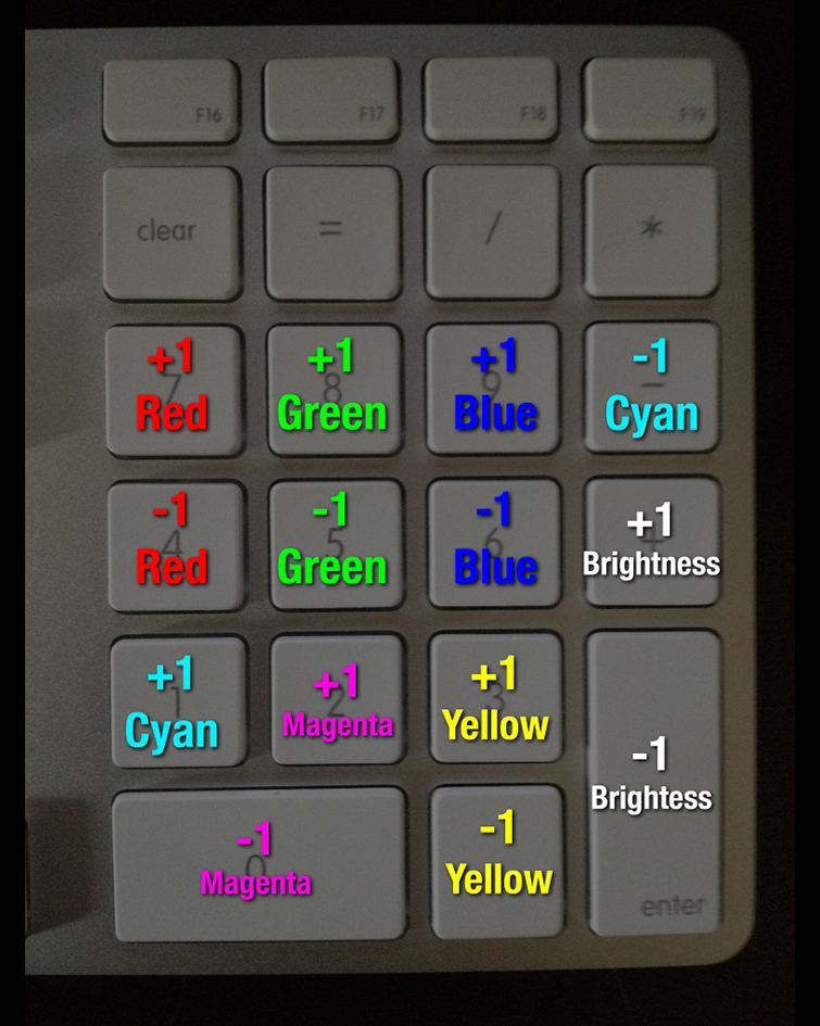 Sadly, they’re (in my opinion) ‘close but no cigar’ for one reason – they shifted everything down one row, which screws up the CMY subtraction keys. You can see the issue: the –1 cyan key is way off to the right, which screws up the columns of everything being vertically aligned. In actual use, this makes a big difference.