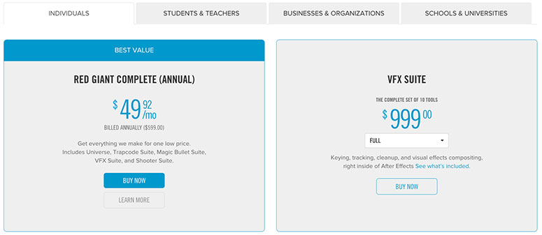- Red Giant Complete Annual Price: $599