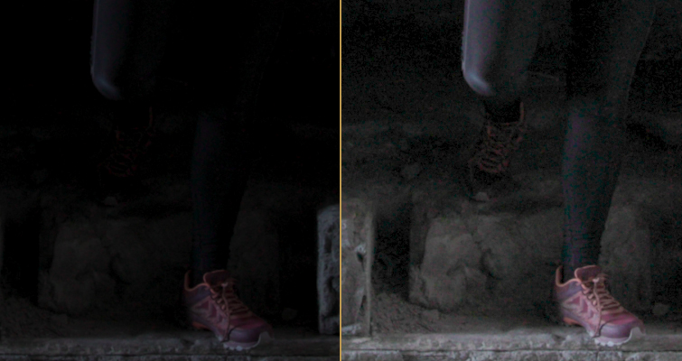 With temporal noise reduction applied to the image on the left, we can really see how much noise has been suppressed. There’s been a slight loss of detail, but it’s acceptable for such a noisy recovery.