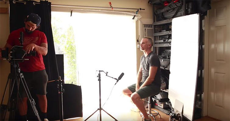 Another scenario involves where your subject is next to an open window, and there’s a huge contrast ratio between each side of your subject’s face that we want to make slightly more cinematic and palatable to the eye. To begin, it helps to put up a diffusion fabric (like a silent quarter grid) over the window, making the window more diffuse and the available sunlight fuller. Next, you can use a piece of reflector board to fill the side of your subject’s face not facing the window—it’s a good idea to have this ready on a stand, so that you can rotate it, giving your subject some fill to taste.