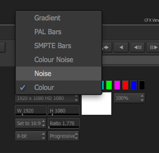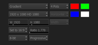 You have full control over the resolution, aspect, and bit depth of the output for the node. This is a useful node for creating simple backgrounds, as well as use it to feed a Gmask node in the matte channel to create black & white matte transitions.