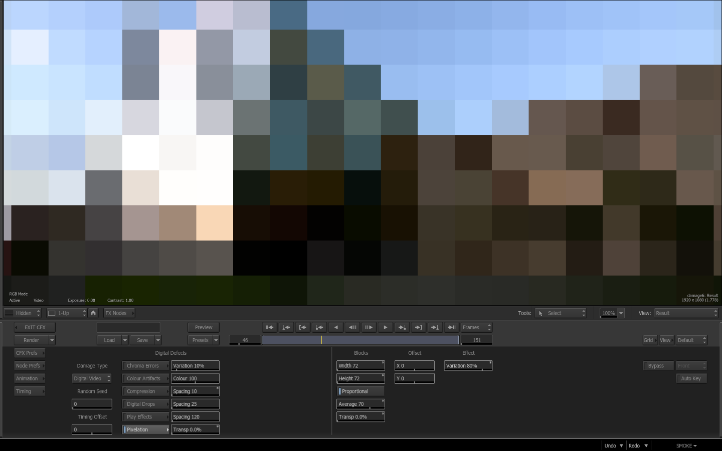 There is a lot you can do with the Damage Node in Smoke. It works great as an adjustment layer on the timeline and can be used for many creative effects within ConnectFX.