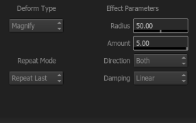 Each of the deform styles will alter the menu settings slightly to customize the look of the warp.