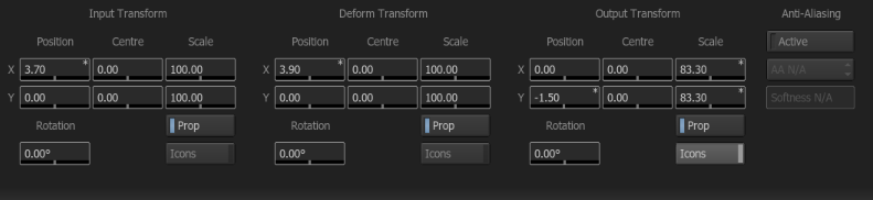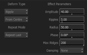 The transform options in the Deform Node, are unique. You can transform the position of the deform effect over the clip, as well as transform the clip through the distortion. Moving the clip through the distortion provides a slightly different feel than transforming the distortion itself, especially when using Scale. The third transform option is the ability to move the clip along with the distortion as a whole. This is something to play with when working with motion graphics, as you can create some interesting effects.