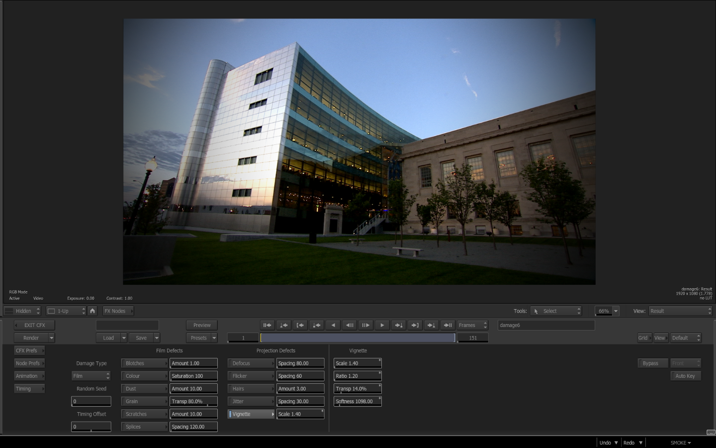 Autodesk Smoke provides a unique post production toolset for the video compositor and effects artist. The following Smoke ConnectFX nodes can be modified to create unique effects in your video projects, from the destructive results of the damage node to the ripples and warps of deform.
