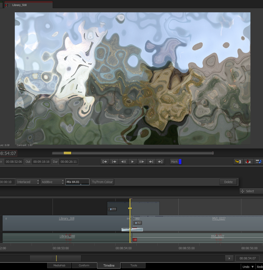 The Deform Node can also be used as a CFX Adjustment Layer on the timeline. You can place the effect over 2 clips and setup an effect to create a quick warp transition.