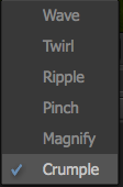 If you have the need to warp, ripple or wave your video clip, then one option might be to use Smoke’s Deform Node. There are other ways to warp and bend clips inside of Smoke – Displacement Maps, Bicubics, and Pixel Spread. However, the Deform Node gives you the “classic” ripples and warps, with some very nice distortion effects like Crumple.