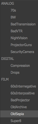 The effect settings are pretty self explanatory based on their names. In order to use a setting you need to activate it by pressing the blue LED next to the setting name. You can then click the setting button which will open up an expanded menu to further tweak the look. The numeric slider next to the setting name will quickly adjust the most obvious parameter. For example, Scratches will adjust the amount of scratches. So you can make quick adjustments without having to expand every menu. However, to really customize your looks, you will want to explore each of these settings.