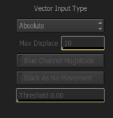 The Motion Blur Node accepts only a forward vector. The Vector Input Type Menu is where you select Normalized or Absolute Vectors. If the Blue Channel has magnitude data you can enable the button to take advantage of that in the blur. You can also activate the Black as No Movement button and threshold value to take the near-black pixels into account for the motion blur.