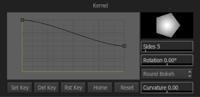 A Kernel setting also appears when you can set the look of the bokeh effect. You can set the sides, rotation, curvature and roundness of the bokeh shape, and adjust a custom curve for the look that can shape the softness and blending of the shape.