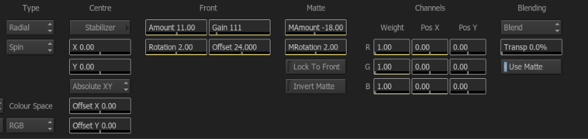 Once the type of blur is chosen, it’s time to set the amount of blur. By adjusting the front settings, you can have the matte locked to these settings or have its own values. Again depending on the type of blur chosen the front settings will give more options. Ex: Length & Angle values for Directional, and Amount & Rotation Values for Radial & Radial Stamp.
