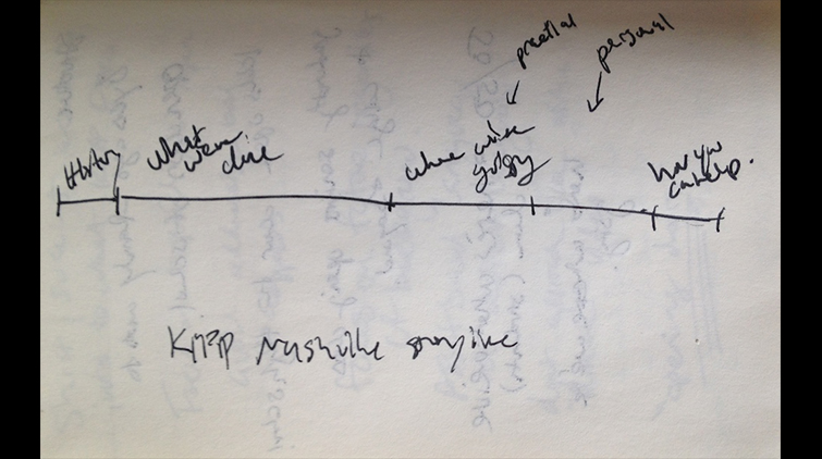 I had my message, they had given me an idea of what evidence we would cover, so I drew out a (super messy) handwritten timeline in my notebook: