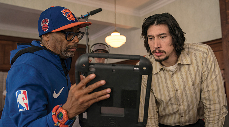 Spike Lee with Adam Driver on the set of BlacKkKlansman via Focus Features.