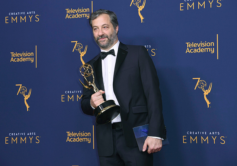 Photo by Richard Shotwell/Invision/AP/Shutterstock. Judd Apatow, winner of the award for outstanding documentary or nonfiction special for The Zen Diaries of Garry Shandling, poses in the press room during night two of the Creative Arts Emmy Awards at The Microsoft Theater, in Los Angeles. 09 Sep 2018.